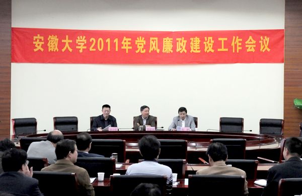 校党委书记黄德宽就做好2011年党风廉政建设和反腐倡廉工作发表讲话。他说,2011年是我校全面启动实施“十二五”规划的开局之年,学校改革发展任务十分繁重,抓好反腐倡廉建设,意义重大。学校广大党员、干部,特别是领导干部要认真学习领会上级纪委会议精神,正确认识和准确把握当前党风廉政建设形势,进一步增强责任感和紧迫感,结合工作实际抓好反腐倡廉各项工作。要加强领导班子和领导干部思想作风建设,保持坚定的政治立场;要加强班子领导能力建设,坚持科学民主决策;要坚持以人为本,加强和改进群众工作;要弘扬优良学风,坚持严谨治学;领导班子和领导干部要自觉自律,廉政勤政,恪尽职守。他强调,今年要以完善惩治和预防腐败体系为目标,进一步抓好反腐倡廉的各项工作。建立健全反腐倡廉教育机制,加强党风廉政教育;建立健全反腐倡廉规章制度,切实规范权力运行;建立健全权力运行监督机制,加强监督检查力度;建立健全查处腐败的惩戒机制,加大违法违纪查处力度。他说,学校各级领导班子和主要负责人要以党风廉政建设责任制为抓手,推动反腐倡廉建设各项任务落到实处。在落实党风廉政建设责任制过程中,要进一步形成党风廉政建设的合力;要创新工作思路,着力提高学校反腐倡廉建设水平;要结合创先争优活动和学校各项重点工作,抓好党风廉政建设和反腐倡廉工作。