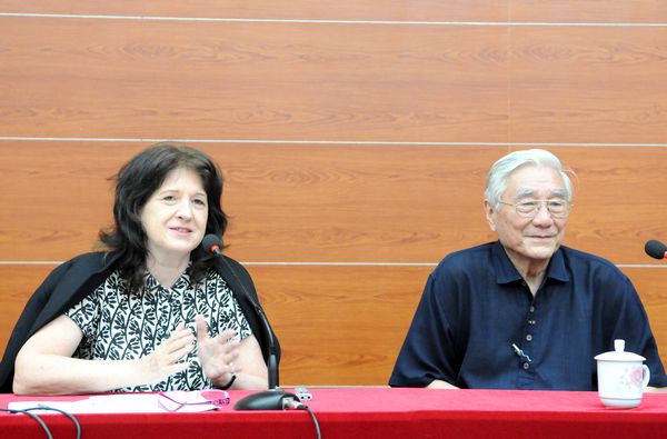本网讯(新闻中心网宣办记者王丹 伍彦)5月10日下午,文典讲坛第九讲在磬苑校区文典阁报告厅举行。德国汉堡大学教授、文学博士、记者、作家关愚谦先生及其夫人海珮春女士做客讲坛,与我校学生一起探讨中西文化的差异和碰撞。本期讲坛由图书馆馆长李霞主持。