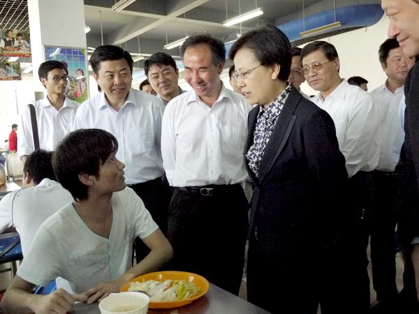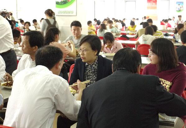 本网讯(新闻中心 摄影熊裕娟)5月13日,教育部党组成员、副部长鲁昕在检查我校食堂工作时指出:食堂餐饮工作关系着师生员工的健康,我们要给予十分重视,不允许有丝毫的马虎和纰漏。高等学校要不断深化后勤管理体制改革,严格学生食堂卫生监督,严格学生食堂物价管理,为学校教育教学工作提供了有力的支持和保障。