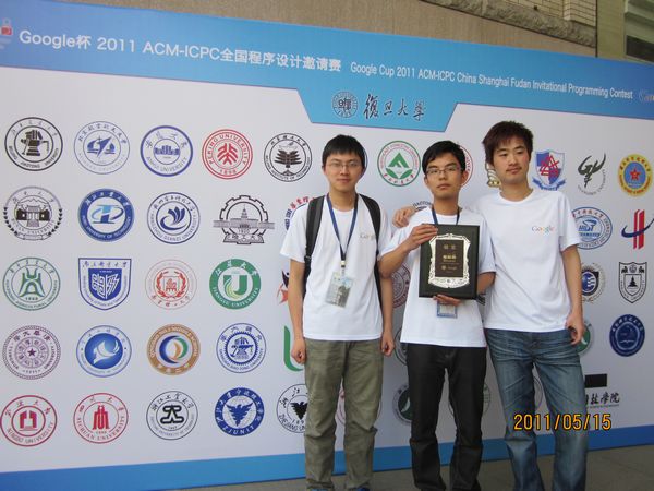 本网讯(周宇晗)5月15日,在上海复旦举行的Google杯2011ACM-ICPC全国程序设计邀请赛中,由我校计算机科学与技术学院08级朱国锋、崔晨阳和丁亚光等三位同学组成的Rio代表队获得铜奖。同日,在福州师范大学举行的第36届ACM-ICPC国际大学生程序设计竞赛亚洲区预选赛中,由我校计算机科学与技术学院08级朱俊、09级卢肖和09级胡文翔等三位同学组成的AHU-RED代表队获得铜奖。