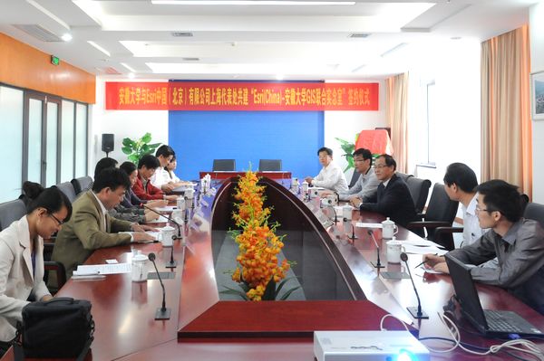 张乾乾介绍了Esri公司概况和该公司旗下ArcGIS软件在我国的发展情况,并展望了Esri公司和我校进行产学研合作的广阔前景。他说,地理信息系统联合实验室的建立,可以使国际最新的地理信息系统技术第一时间到达我校,我校科研成果也可以以最快的速度转化为社会应用,双方可以共同为数字安徽、数字中国的发展做出贡献。