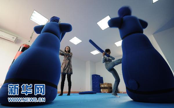 2011年05月25日 新华网 5月24日,两名大学生在安徽大学大学生心理素质拓展中心宣泄室内宣泄情绪。据悉,中心共设有放松体验室(宣泄室)、音乐放松室、生物反馈室等,学生们可以在这些体验室内宣泄烦恼、缓解心理压力、放松心情。新华社发 5月24日,在安徽大学大学生心理素质拓展中心生物反馈室,体验者通过生物反馈仪观察、调整个人情绪。新华社发 5月24日,在安徽大学大学生心理素质拓展中心音乐放松室内,体验者通过听音乐放松心情。新华社发