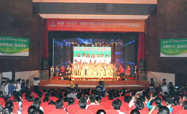 本网讯(校团委,摄影熊裕娟)5月27日上午,第四届“挑战杯”合锻股份安徽省大学生课外学术科技作品竞赛终审决赛颁奖典礼在我校艺术楼小剧场举行。