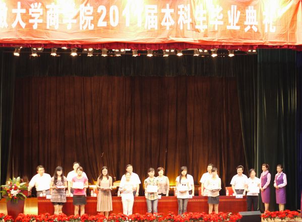 毕业典礼在庄重的国歌声中开始。杜鹏程介绍了本届商学院毕业生的基本情况:619名毕业生中,有19名被评为安徽省品学兼优优秀毕业生,93人被评为校优秀毕业生。