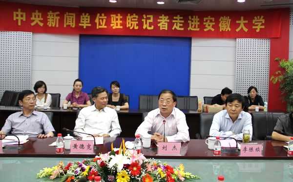 5月28日下午,“中央新闻媒体驻皖记者走进安徽大学”活动在龙河校区逸夫图书馆三厅举行。人民日报、光明日报、经济日报等16家中央新闻媒体驻皖记者代表、校党委书记黄德宽、校长程桦、校党委副书记李仁群出席了座谈会。学校办公室、党委宣传部、新闻传播学院和研究生院的相关负责同志参加了座谈会。座谈会由李仁群主持。
