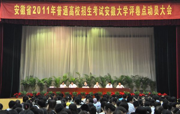 6月10日下午,学校在磬苑校区适之楼多功能厅召开安徽省2011年高考评卷安徽大学评卷点动员大会,备受全省考生、家长和社会关注的2011年高考评卷工作全面展开。这是我校在连续7年圆满完成安徽省高考评卷任务后再次承担此项重要工作。