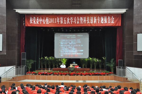 本网讯(新闻中心网宣办记者 王丹 徐庆庆)6月12日上午,校党委中心组2011年第五次学习会暨科技创新专题报告会在磬苑校区艺术楼小剧场举行。学习会邀请著名经济学家、南京大学党委书记洪银兴教授作题为“科技创新和转变经济发展方式”的学术报告。