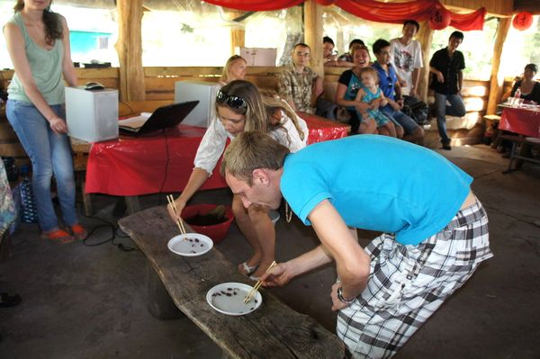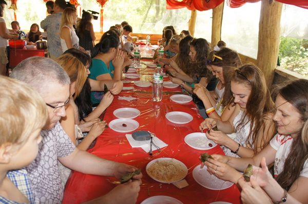 本次文化体验日的主题是“中国的端午节”。活动分为三个部分:包棕子、诗歌朗诵和划龙舟扔棕子。其间还穿插了歌唱表演、用筷子夹豆子比赛及猜汉语词等小活动,活动现场随处可见灯笼、结艺、红绸及福字等中国元素。