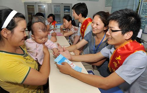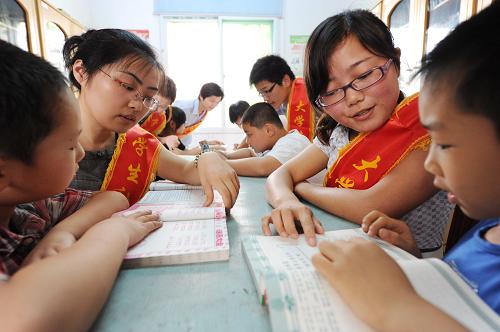 2011年07月09日 来源:新华网 7月8日,几名安徽大学的学生在社区办公室接待群众。当日,合肥市瑶海区胜利路街道大窑湾社区和安徽大学社会与政治学院签订校地合作共建协议,来自该院的12名硕士生、本科生将在社区开展为期半年的社会实践活动,包括全面参与社区工作、为社区居民提供科普、助学、助老等方面服务等。(新华社记者 李健摄) 7月8日,几名安徽大学的学生在社区图书室为小学生辅导功课。