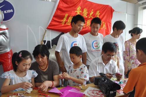 2011年07月11日 稿源:中安在线 9日,来自安徽大学的十位学生开展暑期社会实践活动,通过现场剪纸、问卷调查等方式,了解阜阳剪纸在市民中的知名度、发展建议等。参加活动的大学生表示,阜阳剪纸是非物质文化遗产,通过此次社会实践活动,可了解阜阳剪纸的现状和发展前景,为阜阳剪纸的传承发展出一份力。(阜阳新闻网—记者方松高摄)