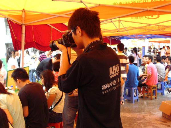 摄影记者徐庆庆带着相机,穿行在人群中,希望能够捕捉到一些不寻常的瞬间。他告诉记者:“关于迎新的报道,我们新闻中心做了详细的策划。作为网络新闻的图片记者,我今天的任务就是将最真实的场景展现给大家,最重要的是抓住每一个细节的瞬间。我们的文字记者会对大一新生和他们的家长进行面对面的采访。希望四年后,这些文字和图片能够帮助他们保留那一份珍贵的记忆。”