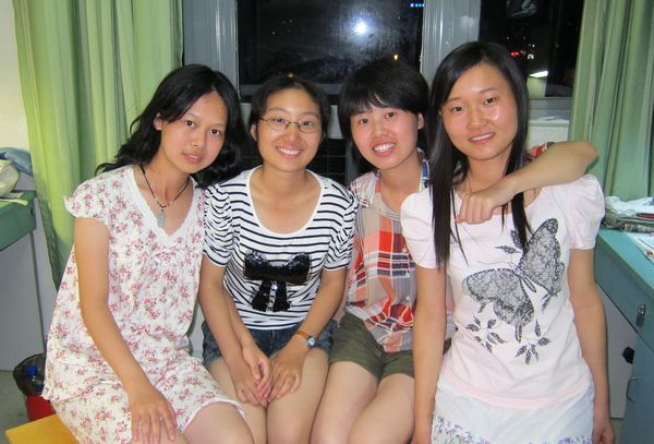 在热情的学姐学长们的帮助下,我很快就完成了报道任务并进入了宿舍——桔园3420。怀着新奇激动的心情,我慢慢推开那扇青灰色的宿舍门。首先映入眼帘的就是在桌子旁收拾东西的那抹白色身影。这位个子不高,扎着马尾的女生温和的对我一笑。“你好,我是陈曲。”虽然只是简单的介绍,但是她那恬静的笑容以及清爽的声音却给我留下了很好的印象。短暂交谈后,我便和爸妈一起整理床铺。一会儿,温柔可人的安庆女生洪尚君在家人的陪同下也来到了宿舍,她颔首低头微微一笑,瞬间冰释了我们之间所有的陌生。短发女生巫濛活泼开朗,似乎要把她那阳光般的笑容渗透到每一个人的心房。