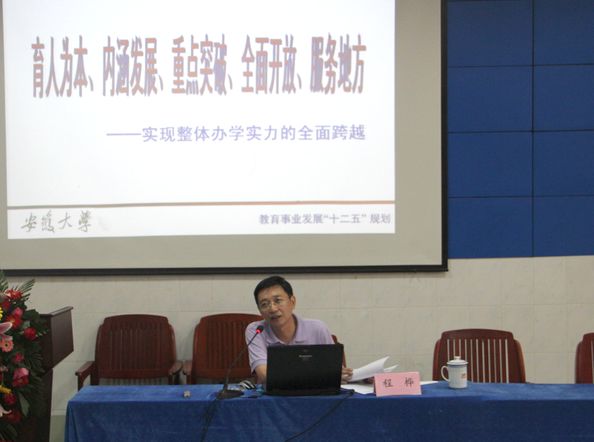本网讯(附属学校黄志敏 ,新闻中心曹振强)9月7号下午,校长程桦来到附属学校看望慰问附属学校教师,并作安徽大学教育事业“十二五”规划的解读报告。