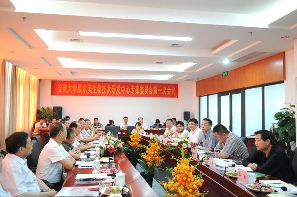 本网讯(新闻中心网宣办记者范璐璐 王丹)9月13日下午,我校康尔美生物技术研发中心专家委员会第一次会议在磬苑校区办公楼B202举行。副校长牛立文、安徽康尔美油脂有限公司董事长许德宏出席会议。会议由生命科学学院院长张部昌主持。