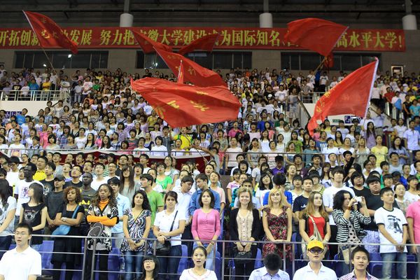 本网讯(新闻中心网宣办记者关丽楠 程念源)“潜岳苍苍,江淮汤汤。夏商肇启,雍容汉唐。……”当熟悉的旋律再次响起,同学们满怀激情,一起声容并貌的合唱了校歌。9月16日晚,2011级本科新生开学典礼在我校磬苑校区体育馆盛大举行,而新生齐唱校歌是本次开学典礼中最重要的环节之一。
