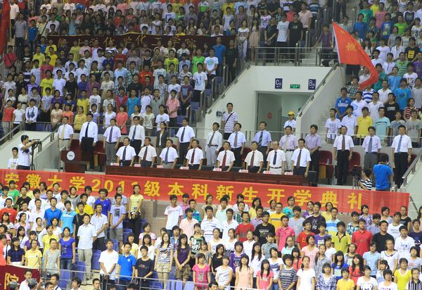 本网讯(新闻中心网宣办记者 范璐璐)9月16日晚,学校在磬苑体育馆隆重举行2011级本科新生开学典礼。校党委书记黄德宽、校长程桦、副校长杜先能、副校长王源扩、党委副书记李仁群、副校长王群京、副校长许继荣、纪委书记胡小松正装出席开学典礼。
