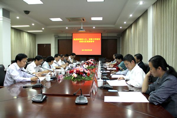 本网讯(新闻中心)9月26日下午,省人大常委会副主任朱维芳、校党委书记黄德宽专程前往马鞍山,看望我校在该市雨山区挂职副区长的杨建军,并与雨山区领导班子进行座谈。