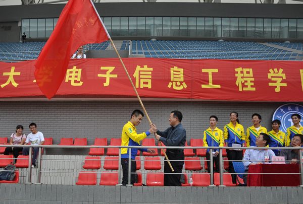 许继荣代表学校向航模队授旗,并向中国人民解放军陆军军官学院对我校航模队的指导和帮助表示衷心的感谢。许继荣说,航模队的组建是一项既有激情又有挑战的创新尝试,它不仅是电子信息工程学院教育管理工作的大事,也是我校践行素质教育的又一亮点。航模队的组建为我校营造了良好的学术科研环境,可以引导更多的同学参与到学术科研活动中来。
