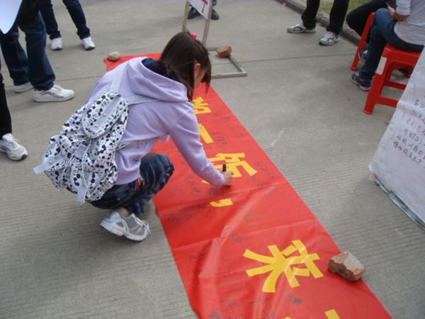 “其实我对世界粮食日了解不多,”2011级经济系刘畅同学在横幅上签名后,仔细阅读了宣传单,“其实最直接的就是要节约,至少我们可以做到吃多少、买多少。”