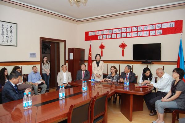 本网讯(巴库国立大学孔子学院 胡凤华 李仁莹)9月23日,中国人民大学校长纪宝成率团访问巴库国立大学,其间到访了我校巴库国立大学孔子学院,看望了该院全体师生,巴库国立大学副校长沙拉拉·马麦多娃陪同访问。