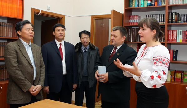 代表团还参观了安徽大学与哈尔科夫国立大学共建的孔子学院,孔子学院学生表演了精彩的文艺节目,汇报了汉语学习成果。孔子学院外方院长巴伊纳扎罗夫及新赴任的中方院长罗晓志进行了工作研讨。