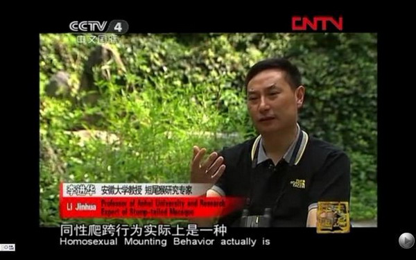 本网讯(资源与环境工程学院孙丙华)1月2日,中央电视台中文国际频道《走遍中国》栏目播放了“短尾猴王国”的专题记录片,介绍了黄山短尾猴独特的行为生态和复杂的社会关系。该片报道了我校灵长类行为生态研究团队在黄山风景区20余年的研究发现,李进华教授做客该节目并以形象的比喻和通俗语言介绍了鲜为人知的野生短尾猴世界。