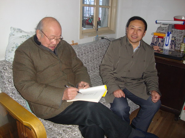 杜先能看望慰问退休教授盛立人(左)