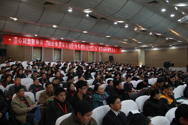 报告强调,2012年是巩固“十二五”良好开局的重要一年,学校发展面临着新的机遇和挑战。在新的一年里,全校上下要紧密团结在校党委的周围,坚定信心,同心协力,锐意进取,开拓创新,加快实施学校“十二五”发展规划,不断谱写推进科学发展、建设高水平大学的新篇章!