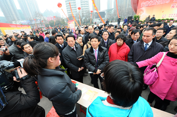 本网讯(新闻中心学生记者 刘璇 贺子卓)3月3日上午, 省暨合肥市“弘扬雷锋精神,建设美好安徽”实践活动启动仪式在肥举行。省委副书记孙金龙,省委常委、宣传部长唐承沛,省人大常委会副主任胡连松,省政府副省长倪发科,省军区副政委周俊以及省政协秘书长王启敏等领导同志,在参加完启动仪式后,来到和平广场学雷锋志愿服务点,亲切看望慰问志愿者。