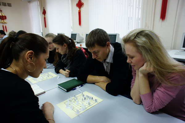本网讯(哈尔科夫国立大学孔子学院 朱廉 罗倩妮)当地时间2月26日,我校乌克兰哈尔科夫国立大学孔子学院波尔塔瓦教学点举办了以中国象棋为主题的文化体验活动,吸引了当地政府工作人员、公司职员、各大中小学生代表参加。活动参加者在聚精会神地下象棋 在接下来的几个月,波尔塔瓦教学点还将推出书法、太极拳、剪纸、中国结等中国文化体验活动,让更多的人感受中国文化的魅力。