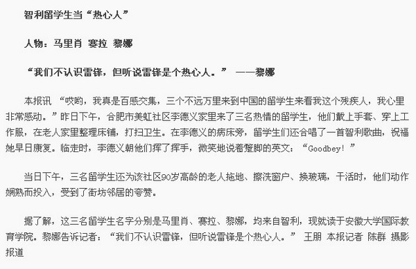 中国青年报3月6日报道我校学雷锋活动