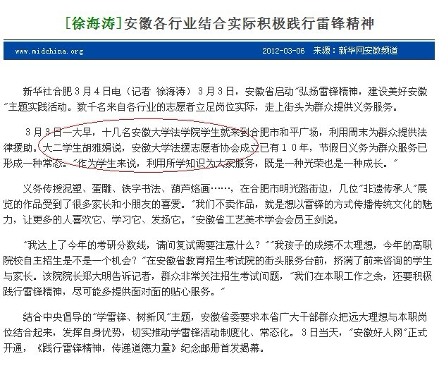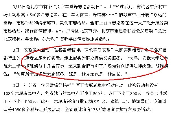安徽教育网系列报道我校学雷锋活动 图为我校各院系学雷锋活动综述报道