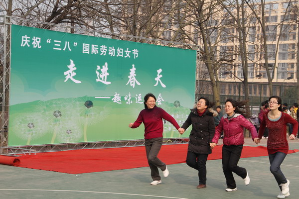 本网讯(通讯员 钟兵)3月10日上午,久违的阳光把浓浓的春意洒满大地,龙河校区塑胶篮球场一派欢乐气氛。以“运动、健康、快乐、美丽”为主题的“走进春天”女教工趣味运动会在这里举行。来自32个部门工会的600多位女教职工报名参加。