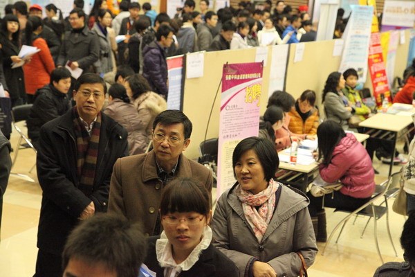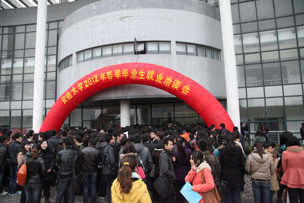 本网讯(新闻中心学生记者 刘雨薇)2012年春季毕业生就业大型洽谈会3月16日上午在磬苑校区适之楼举行。省内外上百家用人单位到场选才,参会学生逾千。