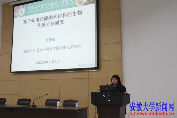 本网讯(新闻中心通讯员 鲍俊杰)3月18日,国家杰出青年基金获得者、南京大学教授徐静娟在磬苑校区博学北楼D101学术报告厅,为我校师生作《基于光电功能纳米材料的生物传感方法研究》的学术报告。