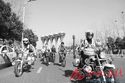 3月24日9时许,翡翠湖畔,一支特殊的自行车队伍吸引了市民目光。当天,21名来自安徽大学的学生志愿者骑着自行车绕翡翠湖一周,在这支队伍前方,2名交警骑着警用摩托车在前方开道。据经开交警大队民警介绍,此次活动系他们与安徽大学联手举办的,目的是希望通过骑自行车的活动,宣传低碳生活,倡导“绿色出行”。