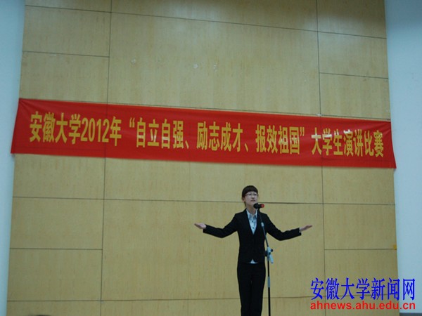 4月13日下午,我校2012年“自立自强,励志成才,报效祖国”大学生演讲比赛在磬苑校区博学北楼D101举行,来自20个院系的选手参加了比赛。