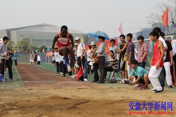 本网讯(吴丹)比赛第一天,国际教育学院选手朱尼奥以6.57米的惊人成绩获男子跳远冠军,破校运会记录,并破2004年由商学院2001级学生谭健在省第十届大学生运动会上创造的6.52米的学校记录。