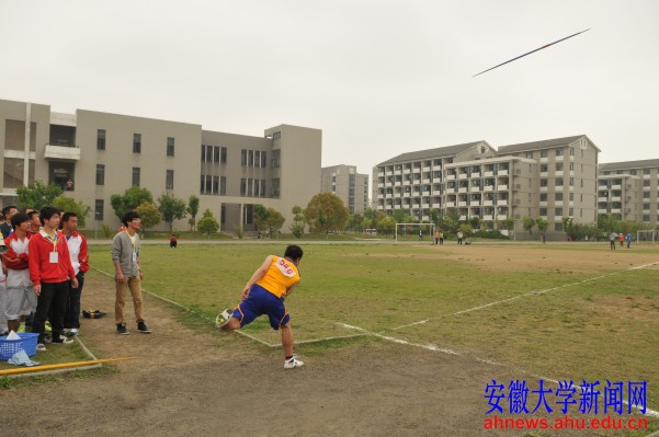 本网讯(新闻中心学生记者 解冰洋)4月20日上午,在男子乙组标枪决赛上,电子信息工程学院2011级选手王瀚鹏以48.89米的成绩,打破由艺术学院09级学生刘成凯在省12届运动会上创造的48.86米的记录。