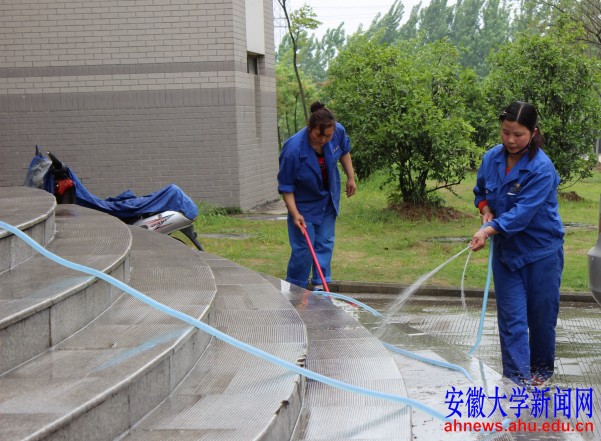 今年47岁的高阿姨身着蓝色的工作服,在楼道里默默清扫着雨天留下的泥泞脚印。当记者来到博学北楼时,已是上午9点10分,高阿姨已经连续工作了一个多小时。“我负责2楼和3楼的楼道,以及3楼教室、卫生间和教室休息室的卫生。”高阿姨告诉记者,教学楼的清扫工作没有固定的时间,只要脏了她就会拿起扫帚和簸箕去。当记者问她为什么选择做这个工作时,高阿姨笑着说:“儿子还没有结婚呢!我虽然工资不多,但也能为他减轻一些负担。”每天面对劳累的工作,高阿姨觉得有些疲倦,她对记者说,“学生有双休日,我只能在周日下午稍微休息一下。除了扫地拖地,窗户和栏杆还需要定期抹一抹。这些工作做完之后,才能回家。”