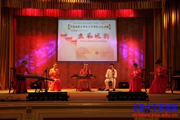 本网讯(杨柳 孙彦 黄丽 陈琳)里海之滨的阿塞拜疆首都巴库,安徽大学“巡讲巡演巡展”代表团的3场学术讲座、4场中国画展览和3场文艺演出,为阿塞拜疆人民带来一阵浓郁的徽风皖韵,让他们品尝了一顿向往已久的中国文化大餐。