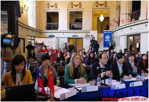本网讯(智利圣托马斯大学孔子学院 芦洁媛 王浩强 严黎黎 徐帅 赵玲媛) 当地时间5月14日上午,以“我的中国梦”为主题的第11届“汉语桥”世界大学生中文比赛智利赛区预赛在维尼德尔玛市歌剧院举行。