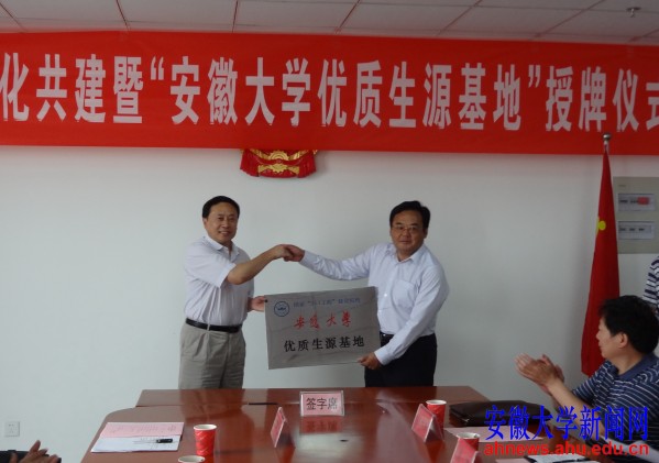 本网讯(毕涛)5月30日上午,安徽大学、寿县人民政府文化共建暨“安徽大学优质生源基地”授牌仪式在寿县举行。安徽大学副校长杜先能,寿县领导陶良慧、刘威、徐晓军,学校有关部门负责同志参加了仪式。