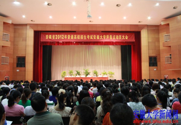 本网讯(新闻中心 吕虹,学生记者 杨子 阮晓宇)6月11日上午,记者从安徽省2012年高考评卷安徽大学评卷点动员大会上获悉,高考语文学科评卷工作于今日正式展开。