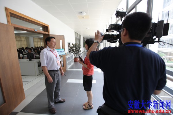 副校长、安徽大学评卷工作领导小组副组长杜先能向央视记者介绍我校评卷点评卷工作