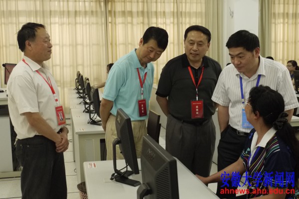 文学院院长、学科中心组组长鲍恒,教务处副处长、评卷工作领导小组办公室副组长毕涛等陪同视察。