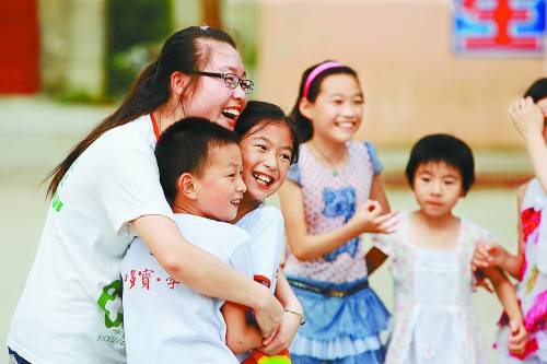 2012年7月12日 中国青年报 7月11日,南溪镇希望小学的孩子们在大学生志愿者的带领下做游戏。 暑期伊始,安徽大学春晖学社的20名志愿者来到位于大别山腹地的中国第一所希望小学——安徽金寨县南溪镇希望小学开展暑期支教活动。在10多天的支教实践中,大学生志愿者将为山区孩子开展音乐、美术、体育等方面的课程和互动游戏,丰富山区孩子们的暑期生活。新华社记者 徐子鉴摄