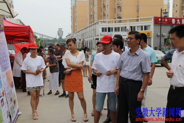 李仁群(右二)在合肥市庐阳区实地了解我校学生暑期社会实践情况