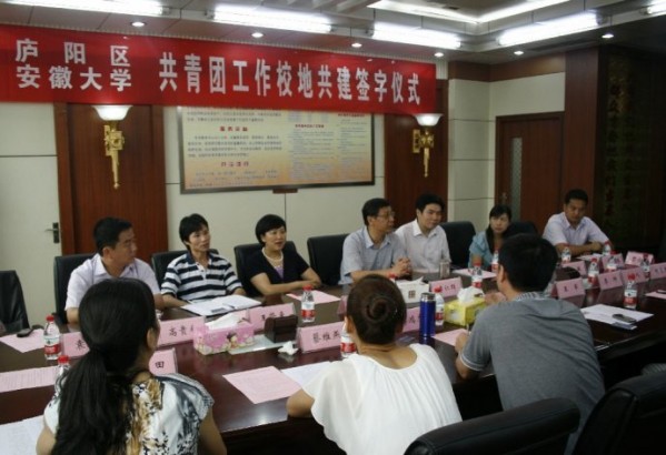 仪式上,团区委副书记桑田和安徽大学团委书记李敏分别代表校地双方在共建合作协议上签字并为安徽大学大学生社会实践基地揭牌。校地共建本着优势互补、合作共赢的原则,双方将在志愿活动、就业创业、社会实践等方面加强合作。