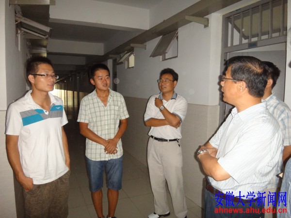本网讯(学生处 张睿)8月17日上午,校党委副书记李仁群在学校办公室、党委宣传部、研究生院、学生处、保卫处、团委和物业等部门负责同志的陪同下,来到磬苑校区,深入研究生和本科生宿舍、教学楼、图书馆等场所,看望慰问暑期留校的学生和假期值班的教职工,检查校园安全稳定工作。